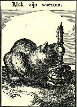 Om ’t gheniet van het smeer, soo lickt de Kat de Kandelaer.